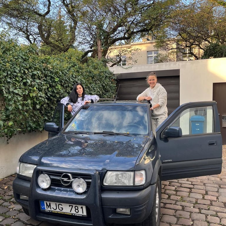 Далі наші бджілки - Аліна та Айкуш, вирушили у подорож до Литви. Незважаючи на труднощі та перешкоди на шляху, вони успішно викупили автомобіль